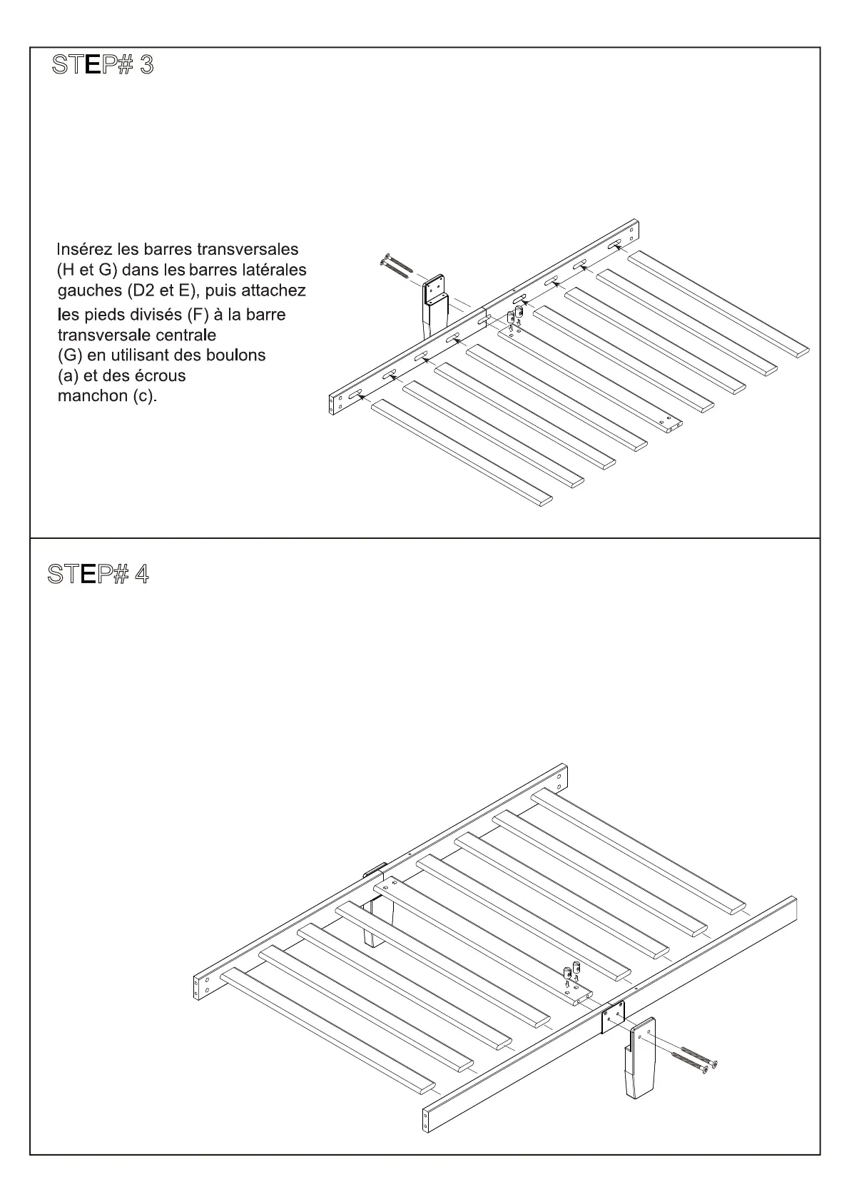 Insérez la barre transversale (H et G) dans la barre