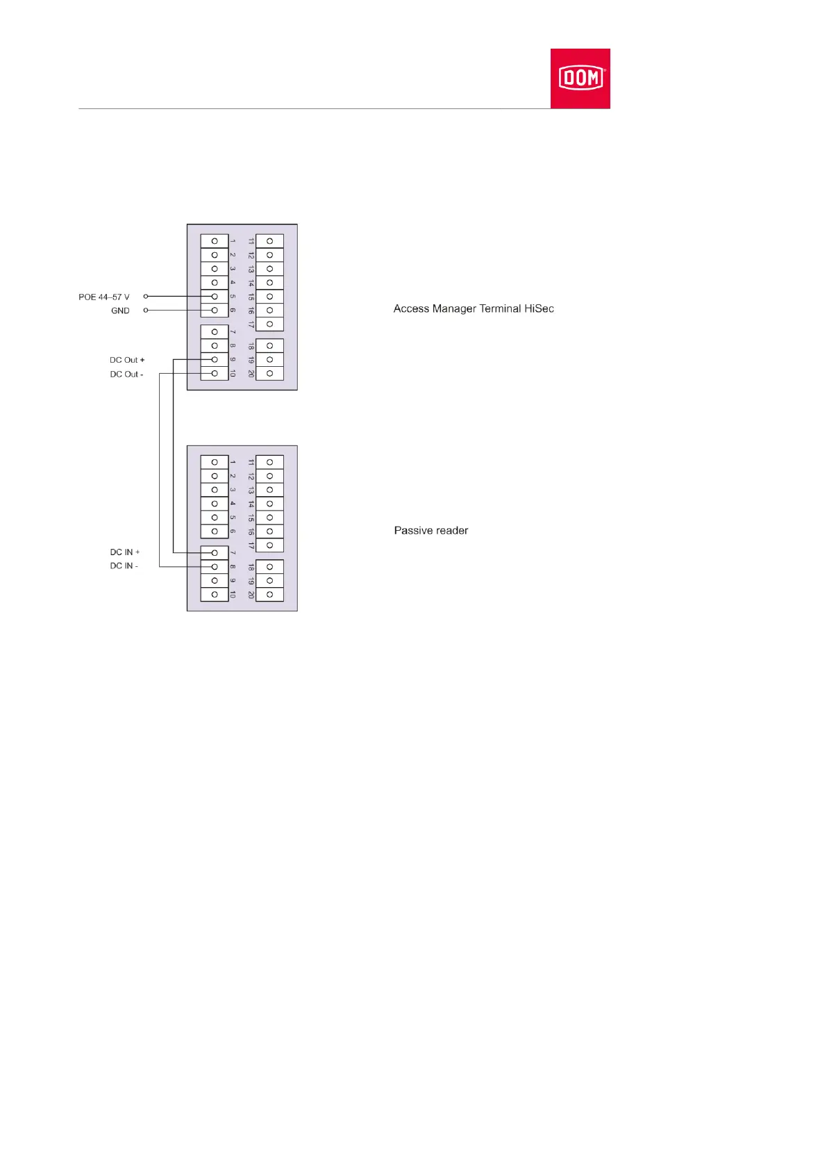 DOM ELS Access Manager V8 - Connecting the Access Manager;Access Manager Terminal to the Power Supply with a Passive Reader (Hisec)