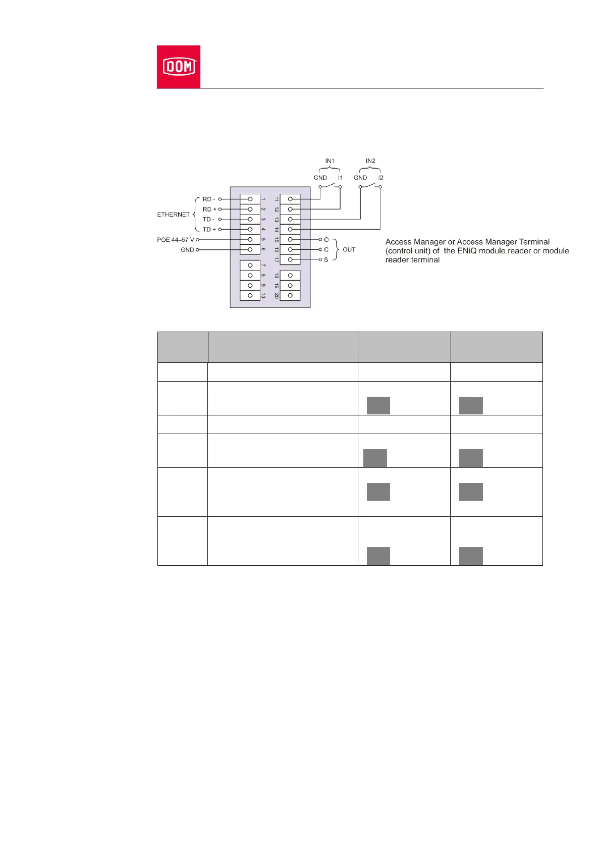 connect wires 7 and 8 of the Ethernet cable to terminal 5 of the DOM device