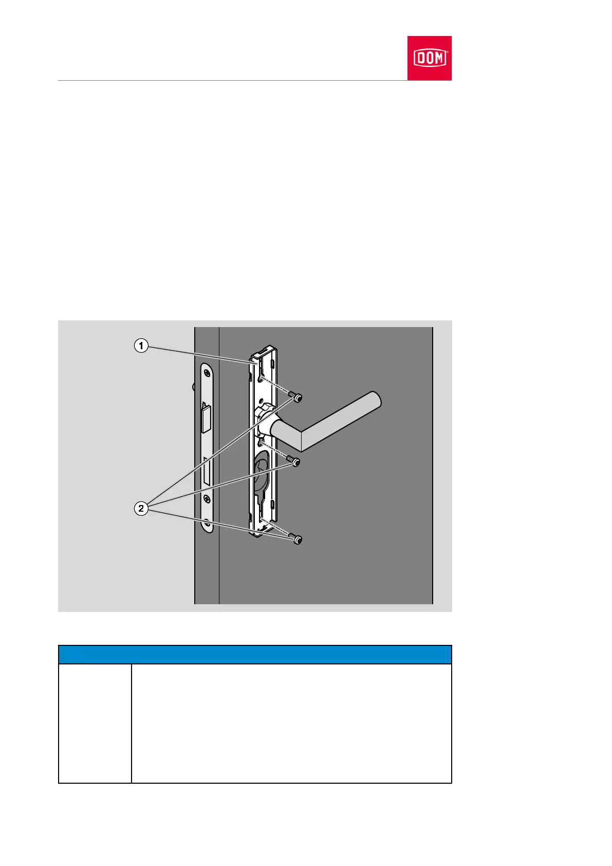Place the assembly profile (1) with spindle on the outside of the door so that