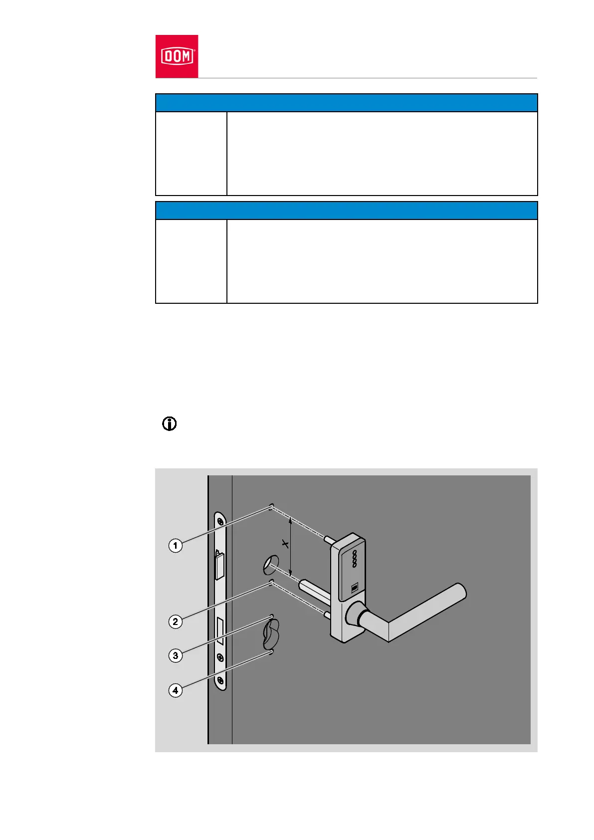 upper drill hole (1) in the door leaf.