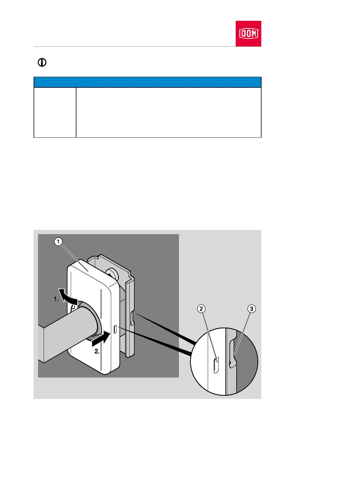 Press the cylinder rosette laterally onto the assembly profile (1.) until the