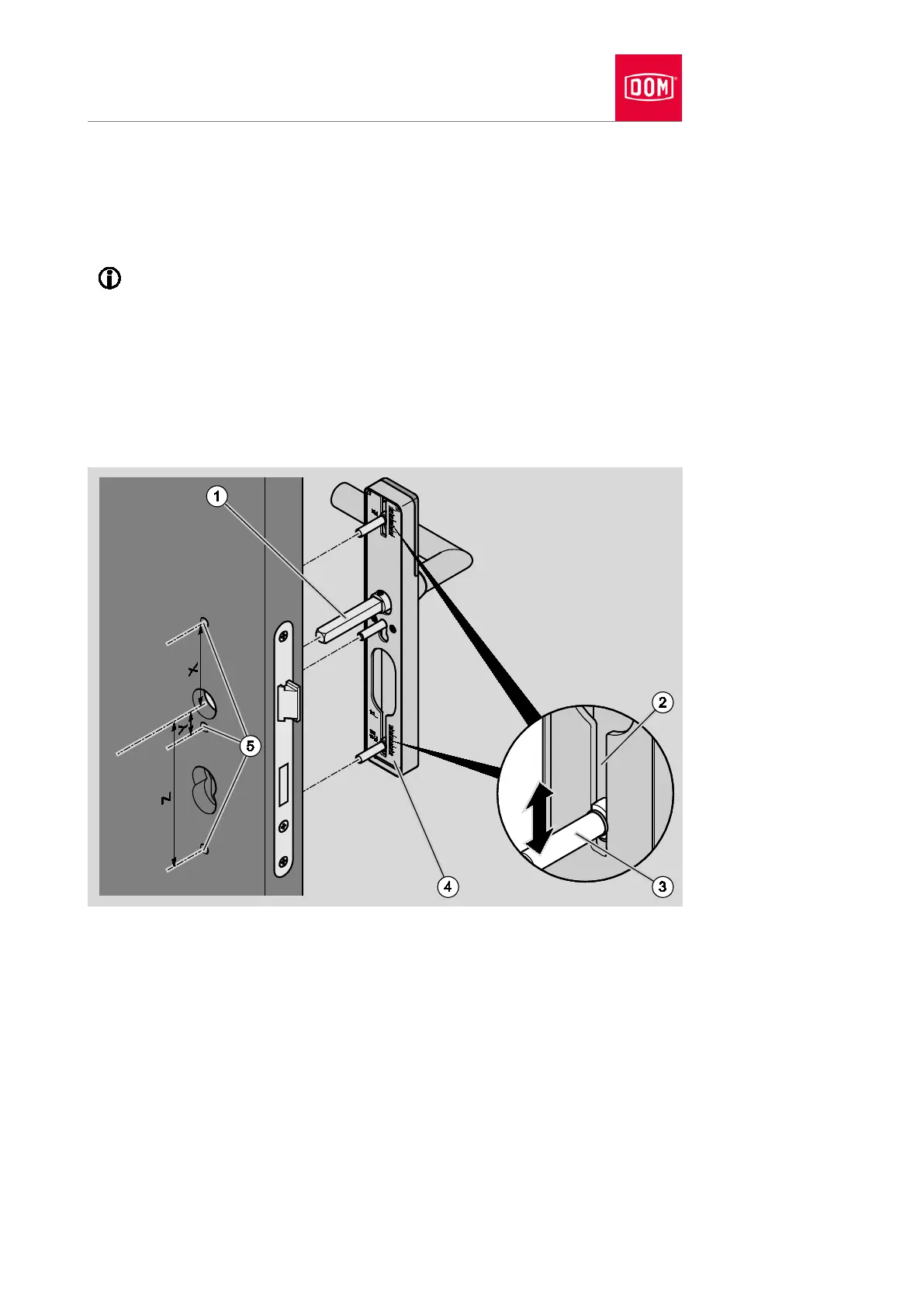 guide slots (3) in the assembly profile on the outside of the door as shown.