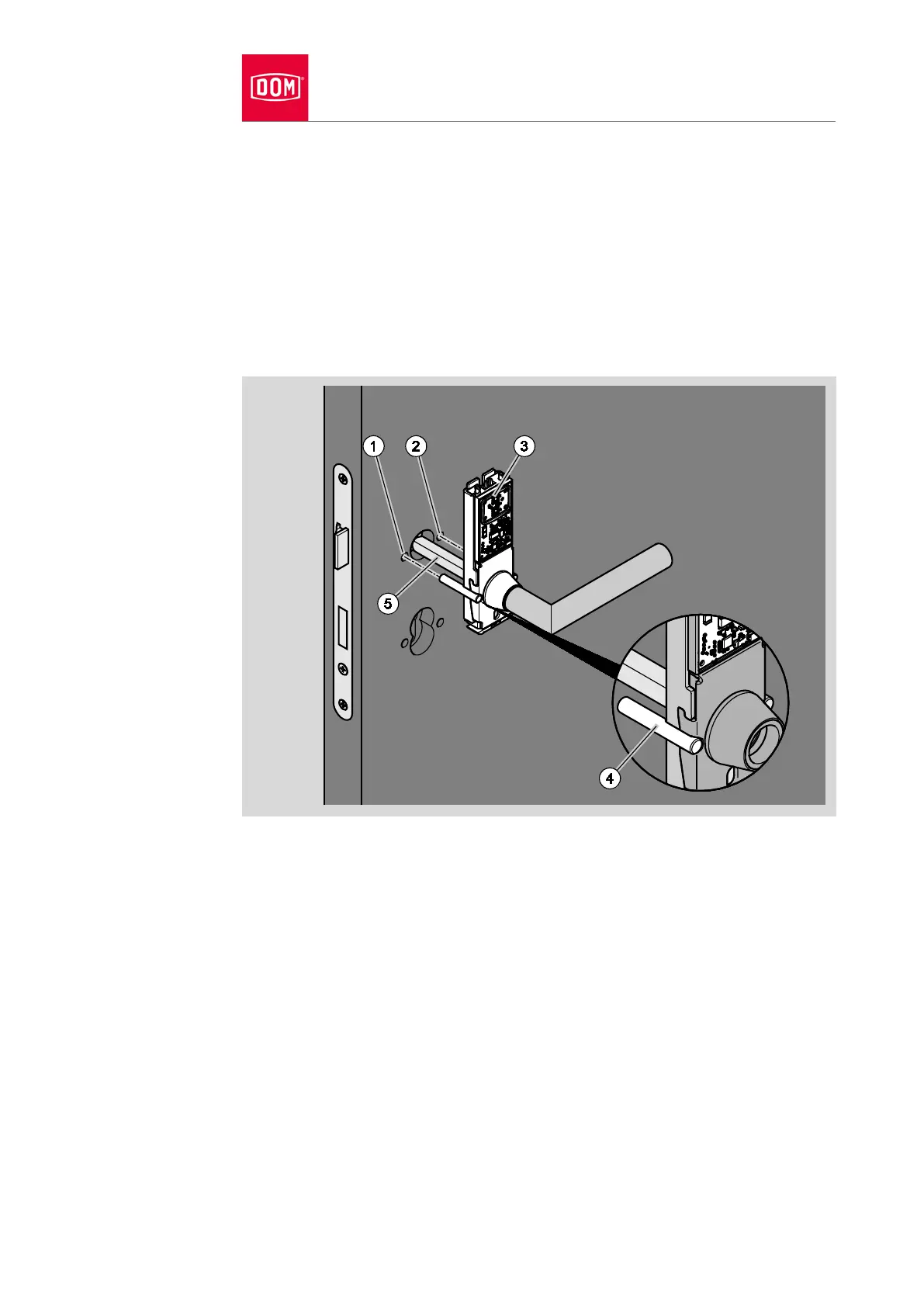 Place the lever handle on the spindle protruding on the inside of the door.