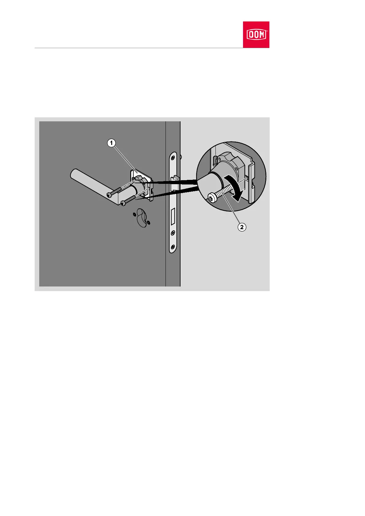 profile (1) of the lever handle rosette into the drill holes as shown.