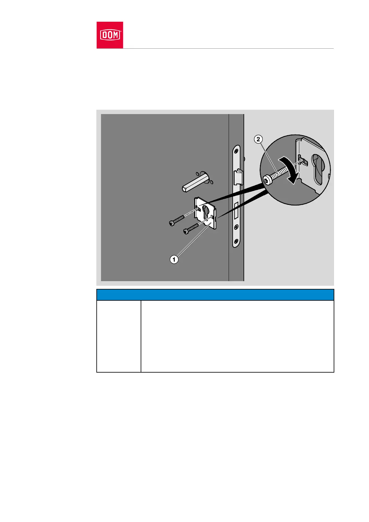 profile (1) of the cylinder rosette into the drill holes of the door as shown.