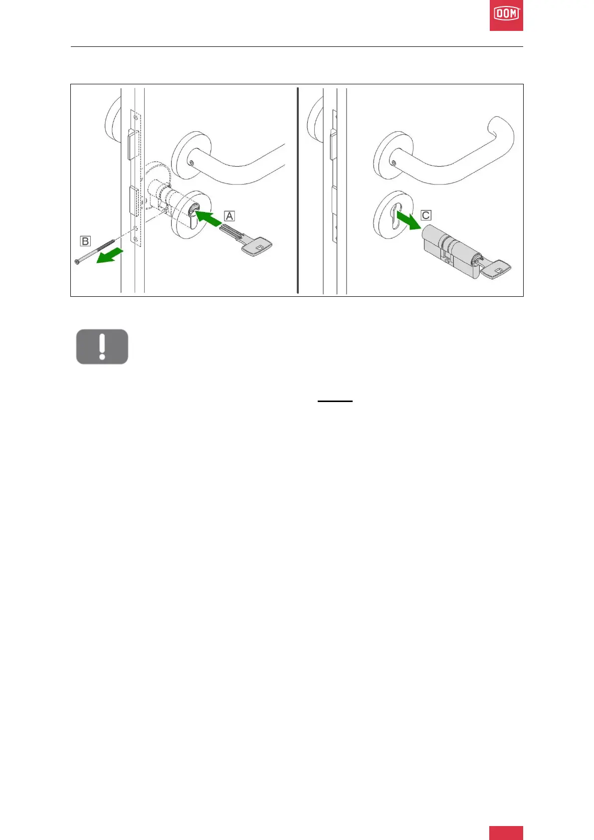 Only remove the cylinder when the door is open and secured against closing.