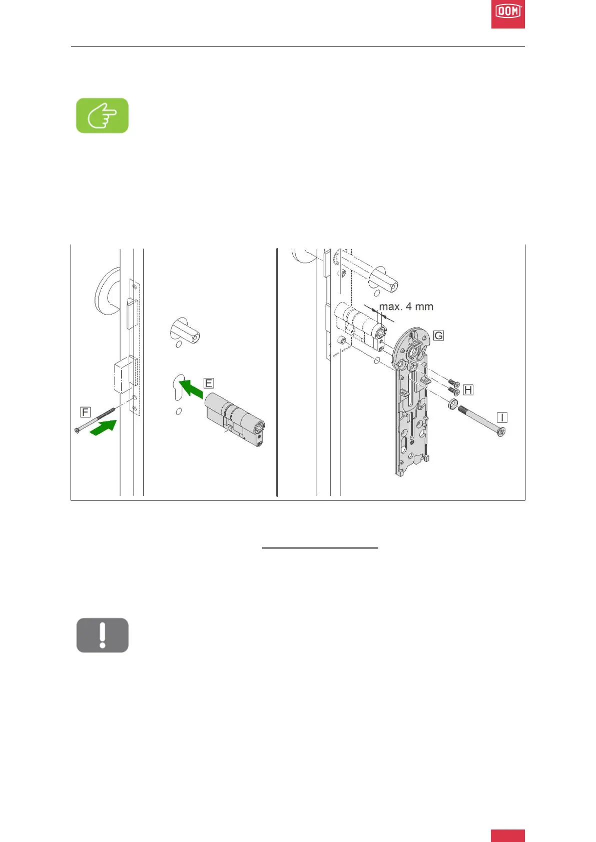 12. Check that the cylinder only protrudes a maximum of 4 mm from the door leaf.
