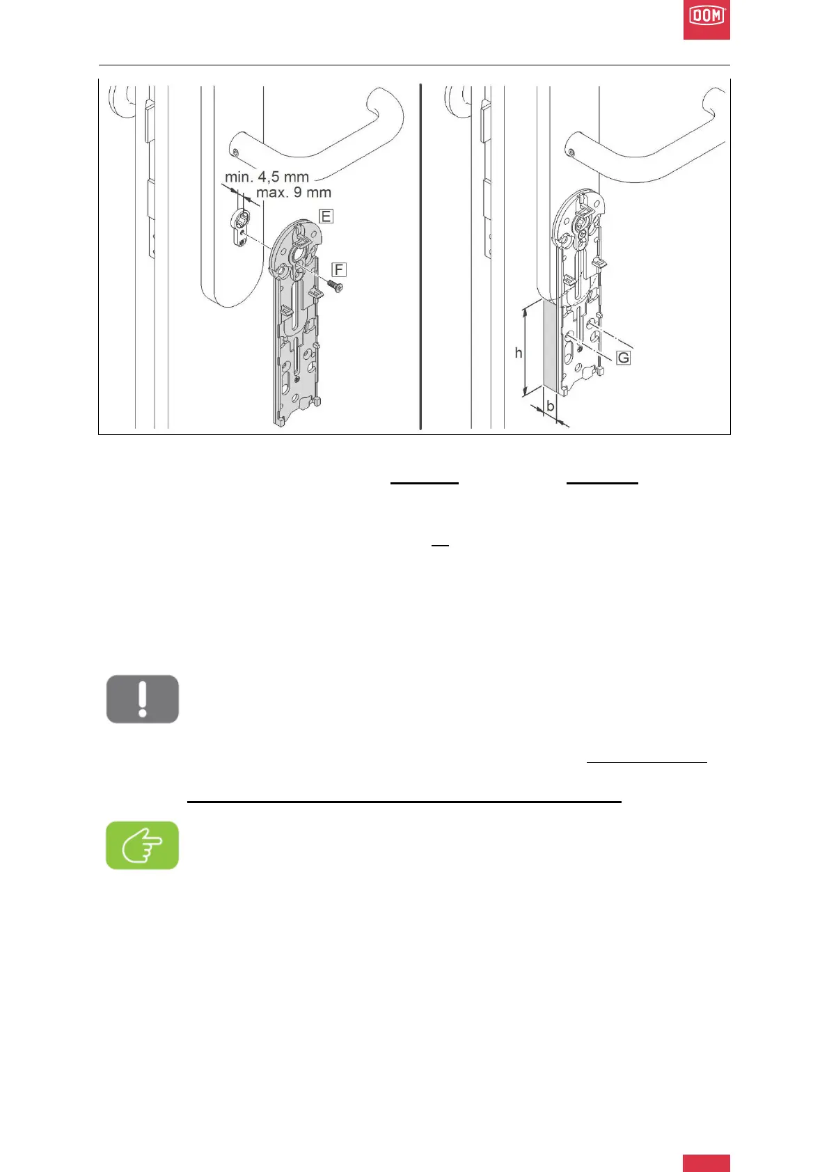 the base plate is parallel to the door leaf. Note the value.