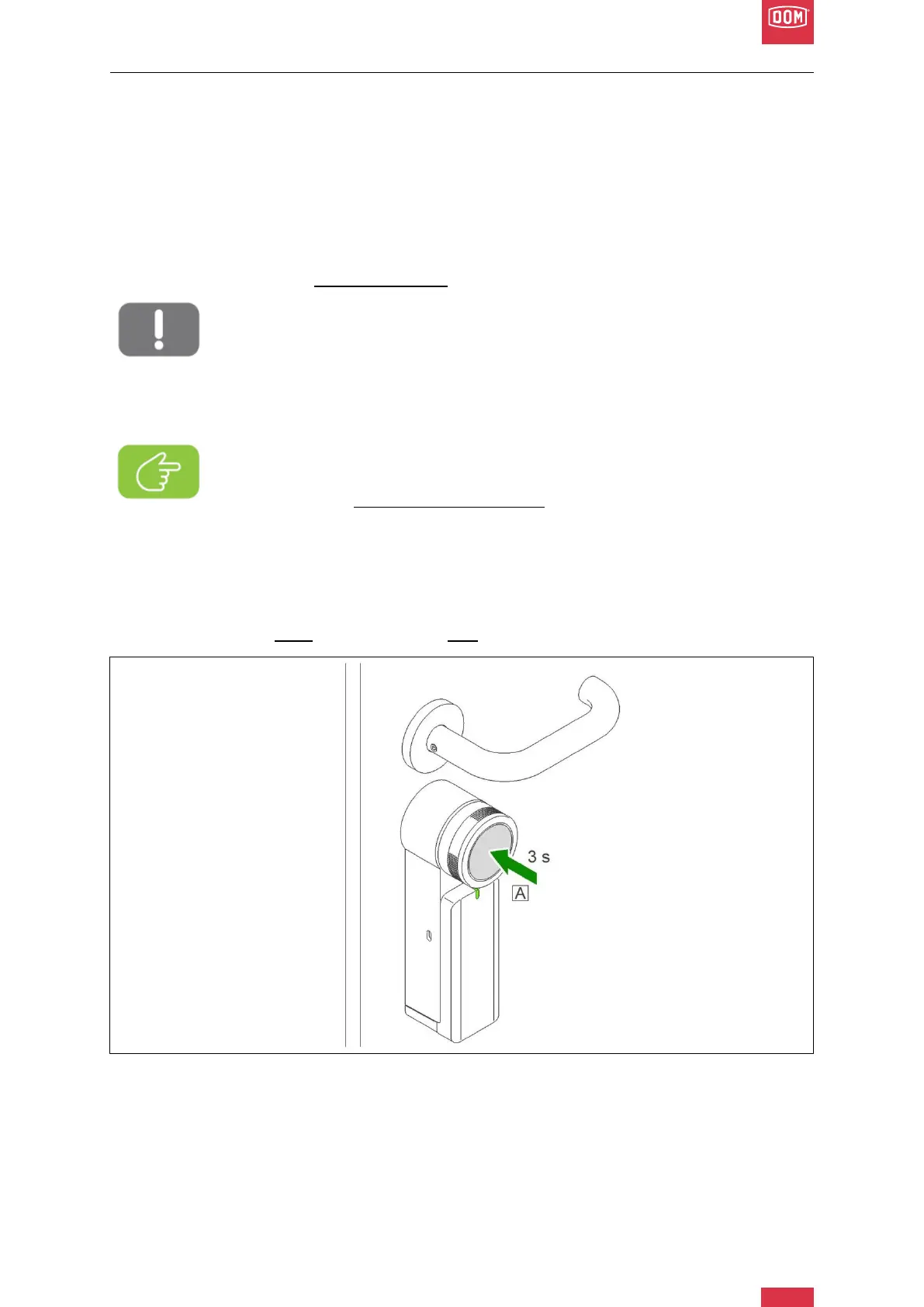 6. Access the setting mode (see Commissioning) by pressing and holding the push but-