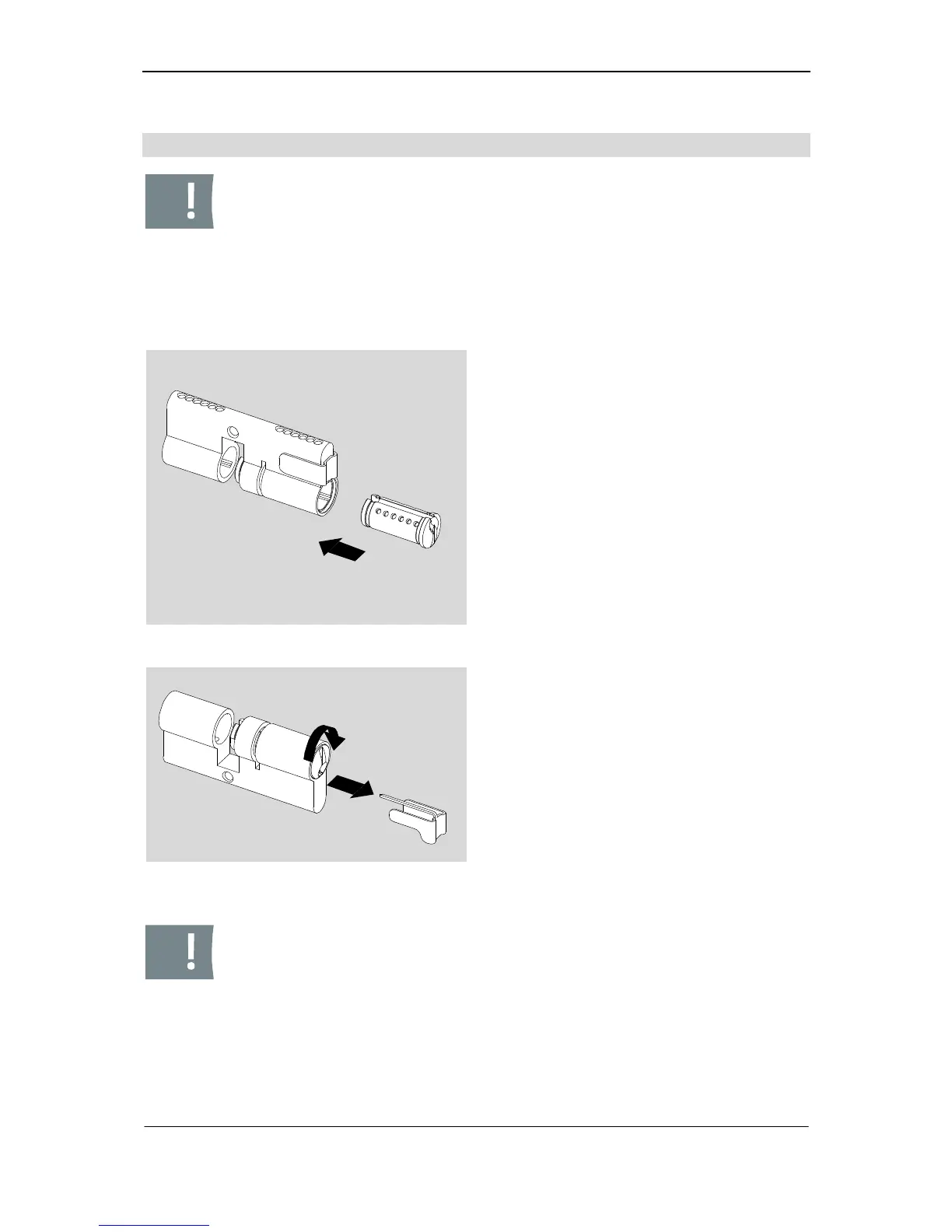 Caution! The cylinder core is not yet fixed by security rings. If you insert