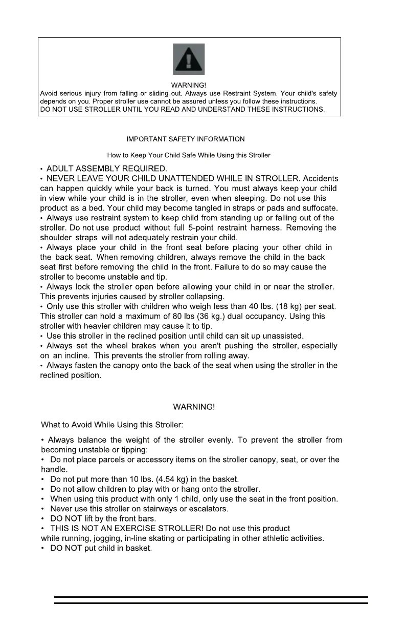 DOM Track - IMPORTANT SAFETY INFORMATION; How to Keep Your Child Safe; What to Avoid While Using