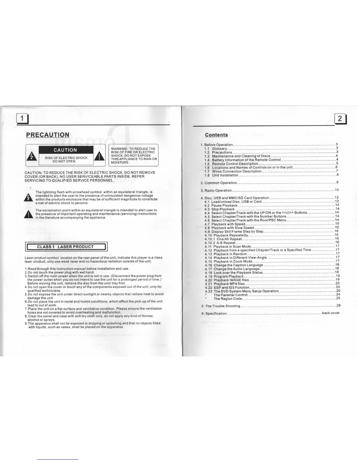 Domain DM-DV703USB - PRECAUTION; CAUTION; CLASS 1 LASER PRODUCT; General Safety Guidelines