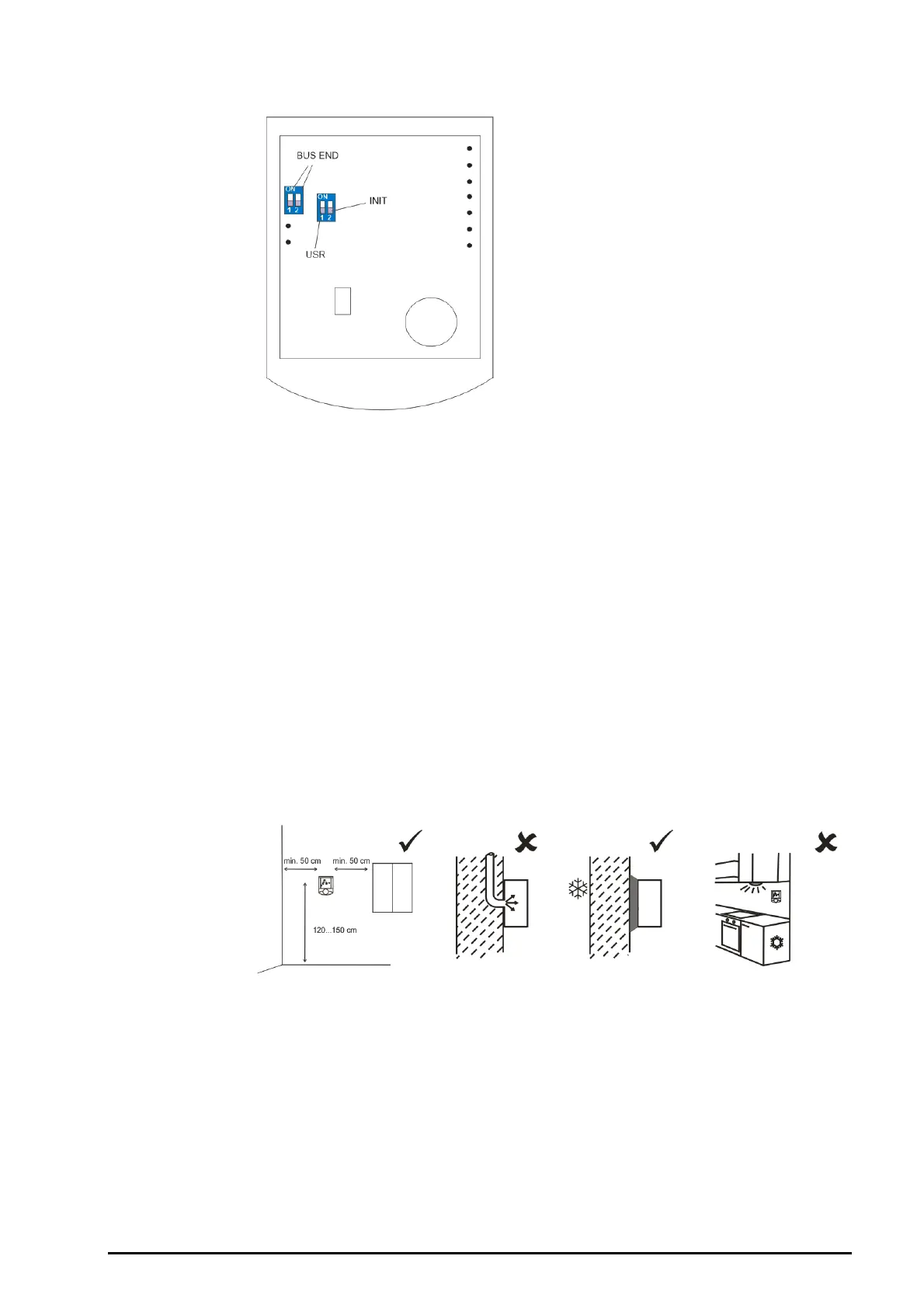 installing the sensor on cold walls. Avoid sensor exposition to sunlight or other heat