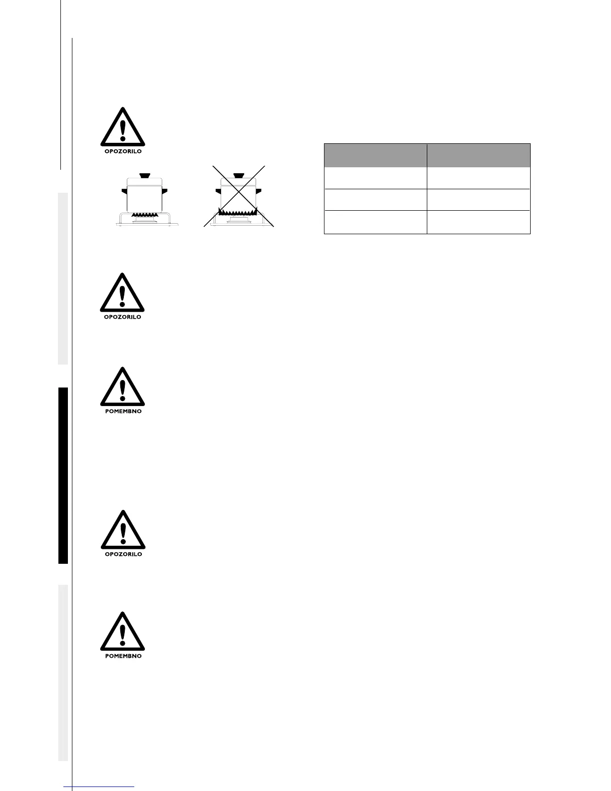 PLAMEN NE SME UHAJATI IZVEN DNA POSODE. POSODO POLOŽITE NA SREDINO