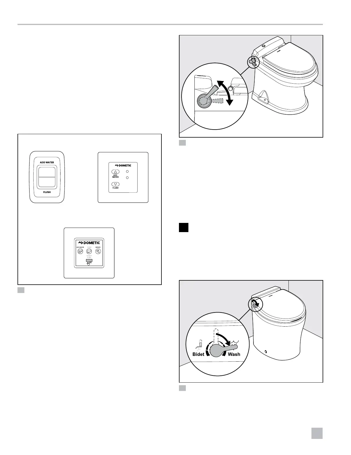 Dometic 4410 - 4 Mode Demploi; Utilisation du Panneau Tactile Ou de Linterrupteur de Chasse; Utilisation de la Poignée de Chasse; Utilisation de Loption Bidet
