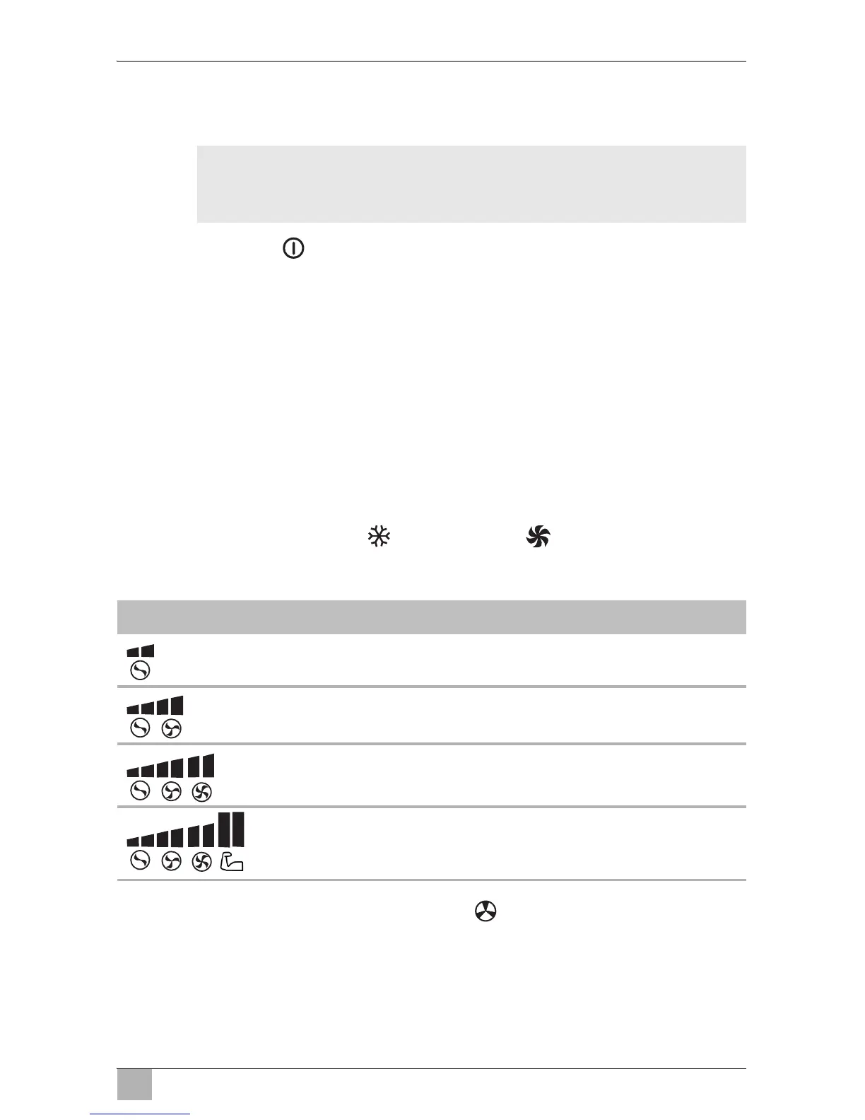 ➤ Valitse sopiva puhallinteho painikkeella .