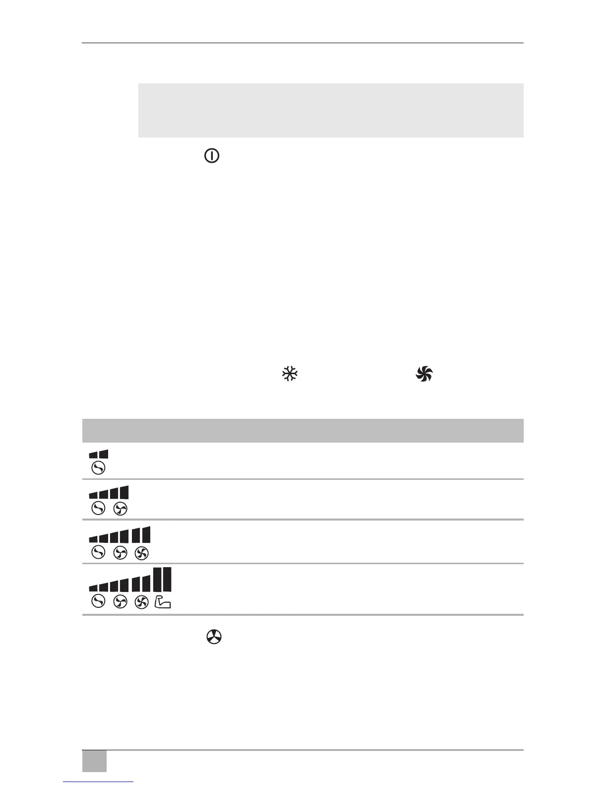➤ Vyberte tlačítkem požadovaný výkon ventilátoru.