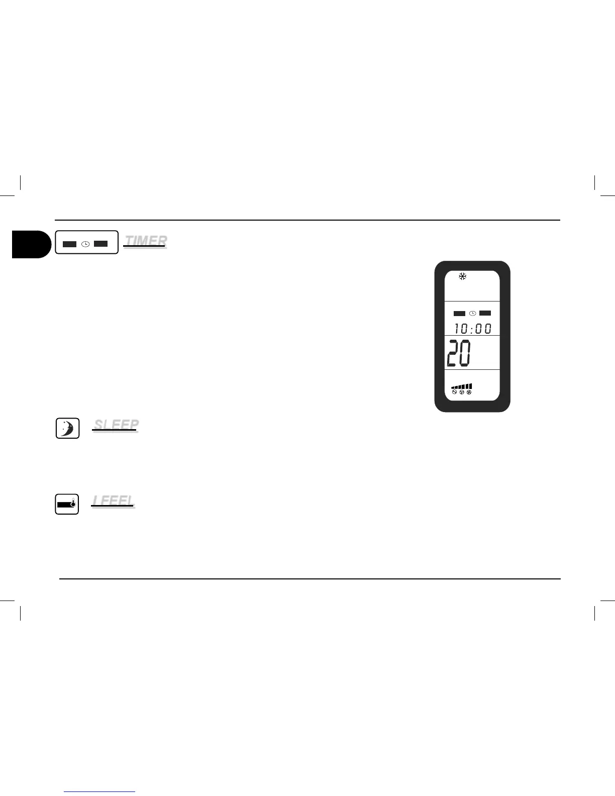 Note: The SLEEP function lowers the set temperature by 1° after one hour and by 2° after