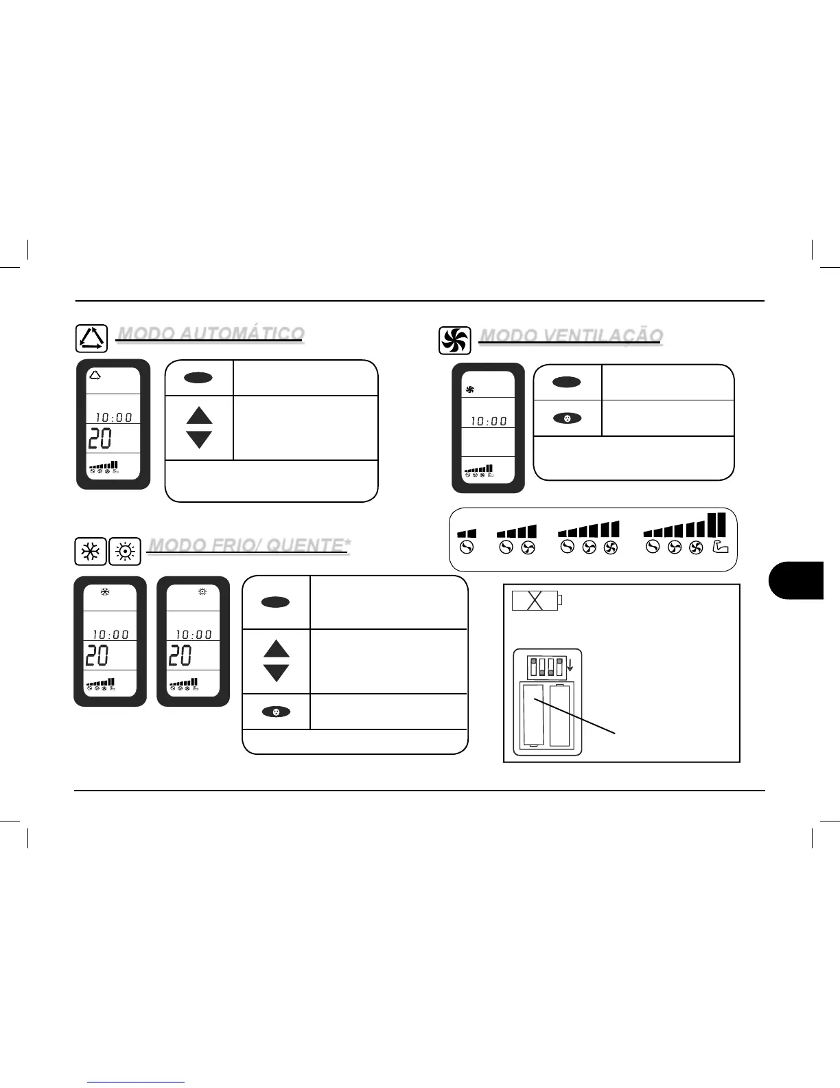 Velocidades disponíveis da ventoinha (Frio/Quente/Ventilação)