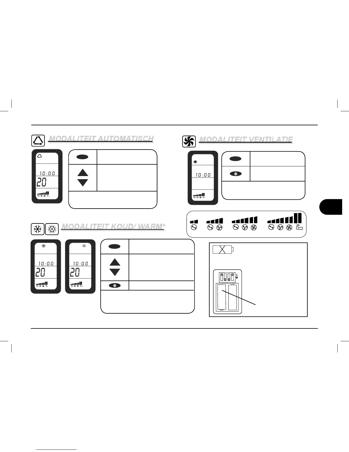 Beschikbare ventilatorsnelheden (Koud/Warm/Ventilatie)
