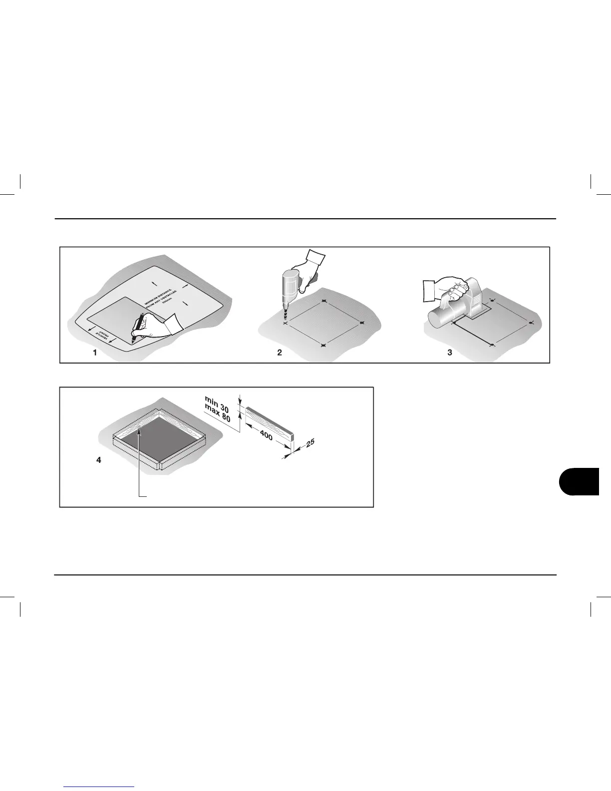 Merkitse aukon sijainti ja mitat pakkaukses-