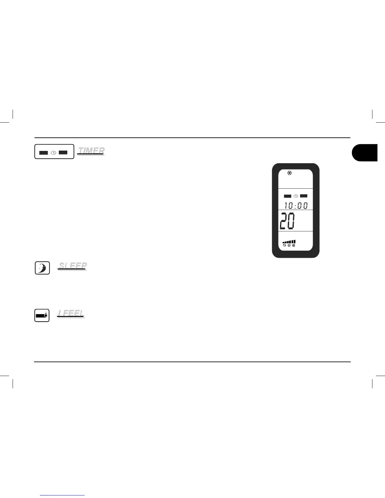 Note: The SLEEP function lowers the set temperature by 1° after one hour and by 2° after