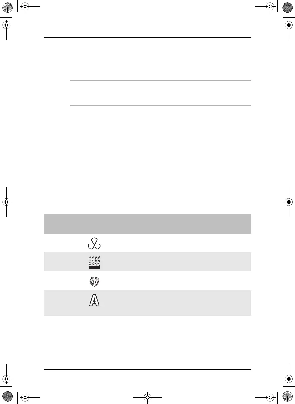 ✓ Det aktuella driftläget visas genom en svart symbol på fjärrkontrollens