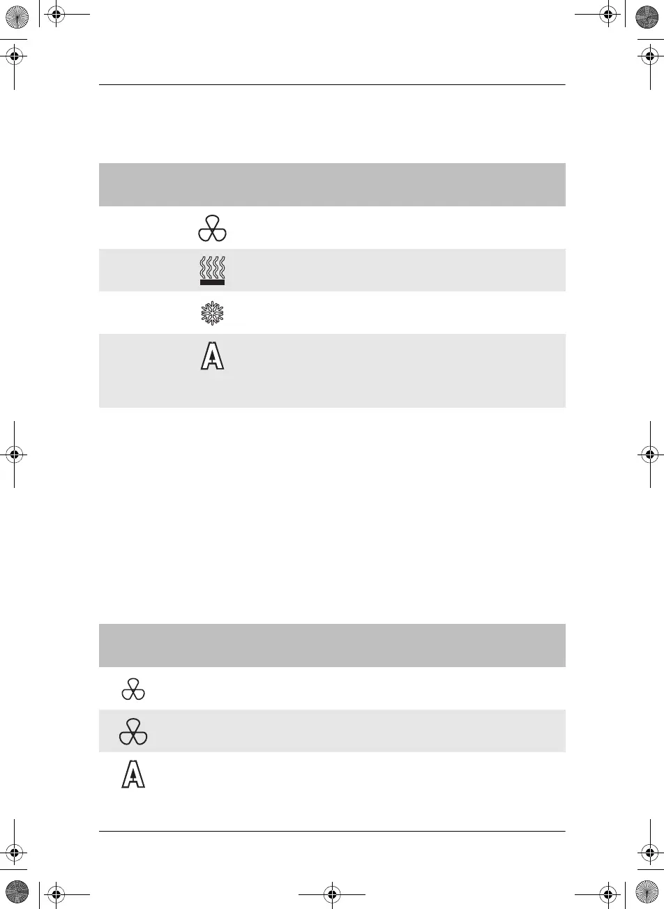 ✓ The currently selected air conditioning mode is indicated by a black sym-