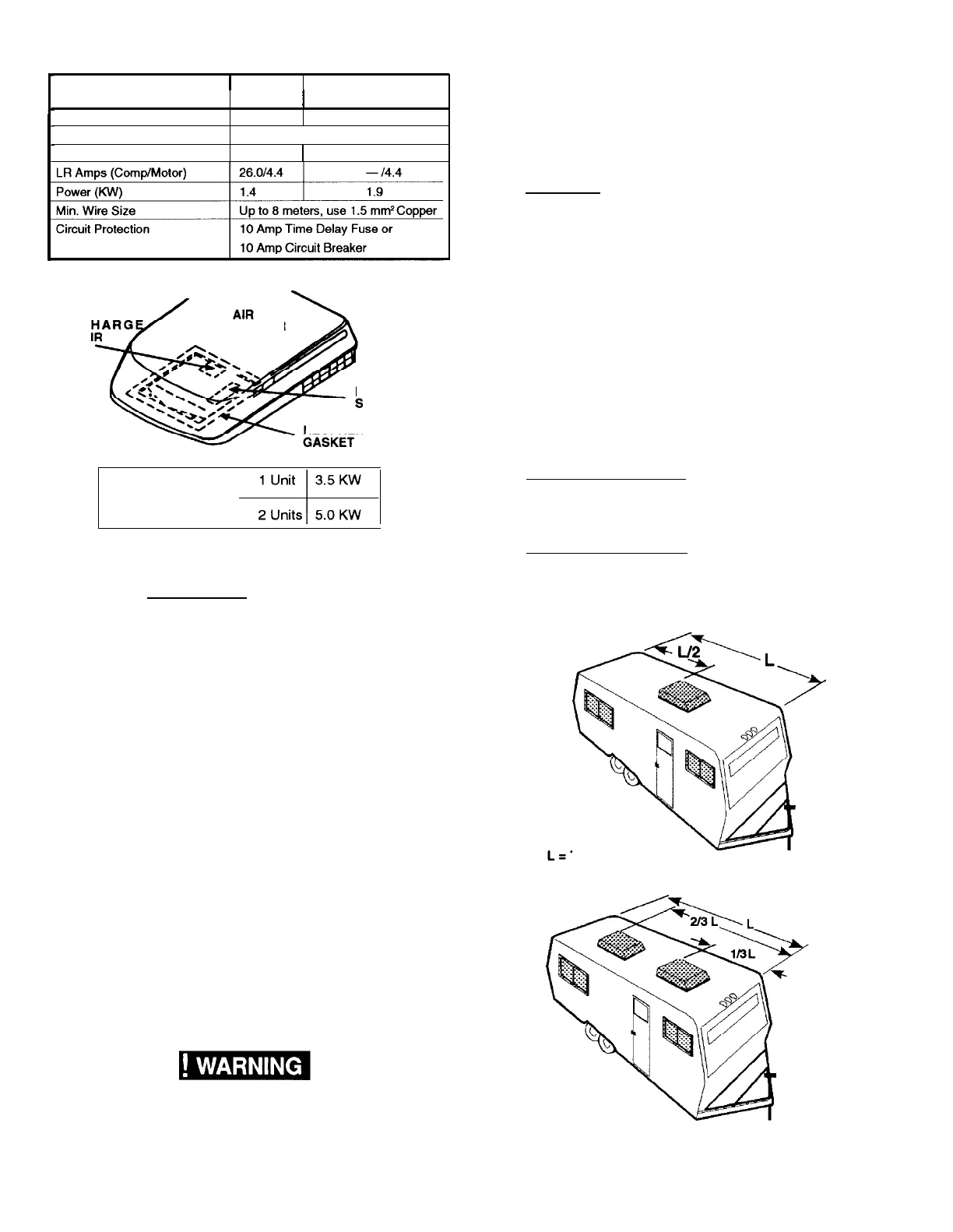 and one air conditioner 2/3’s back from front of van
