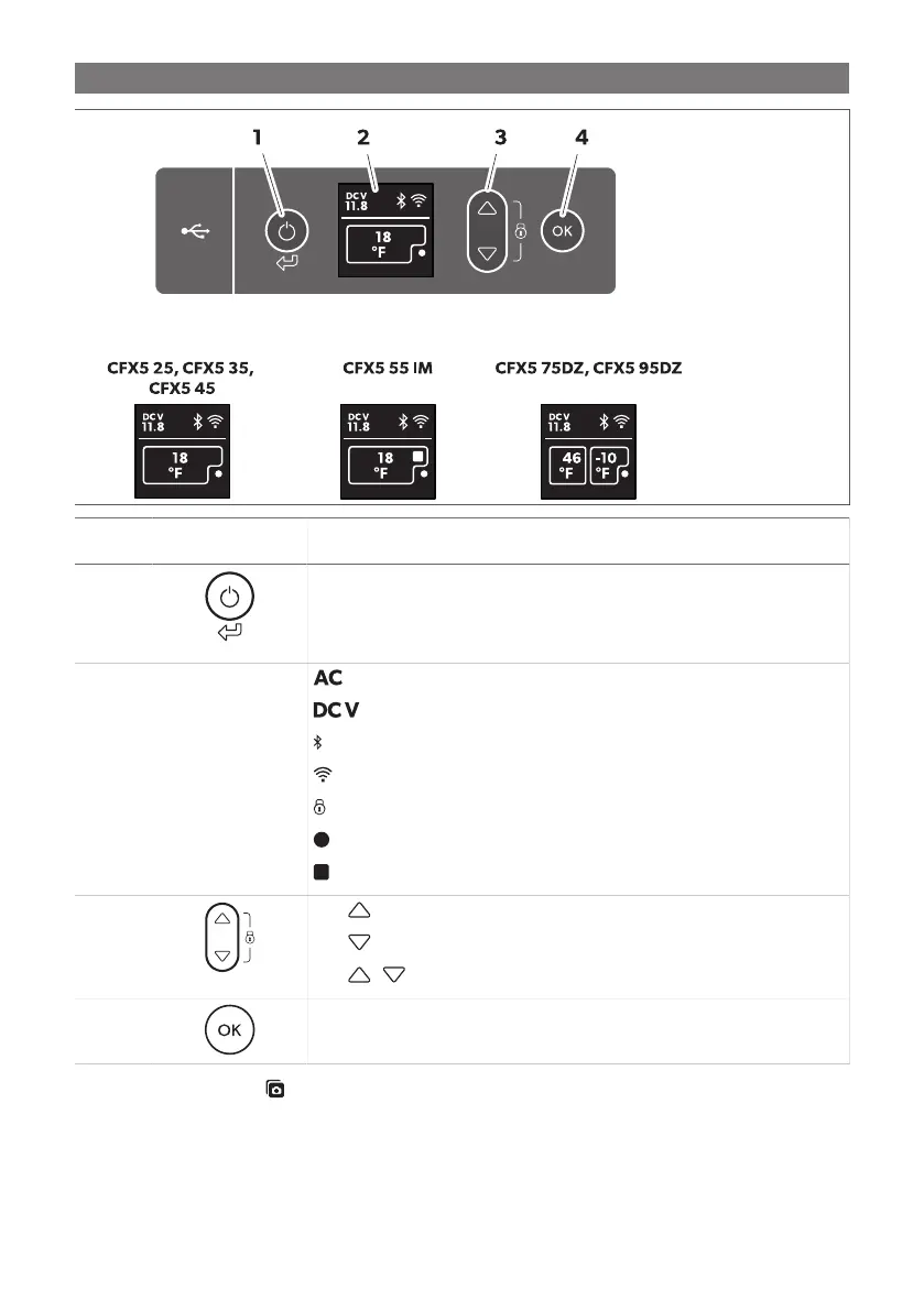 Pulse para desplazarse hacia abajo o para disminuir el valor seleccionado.