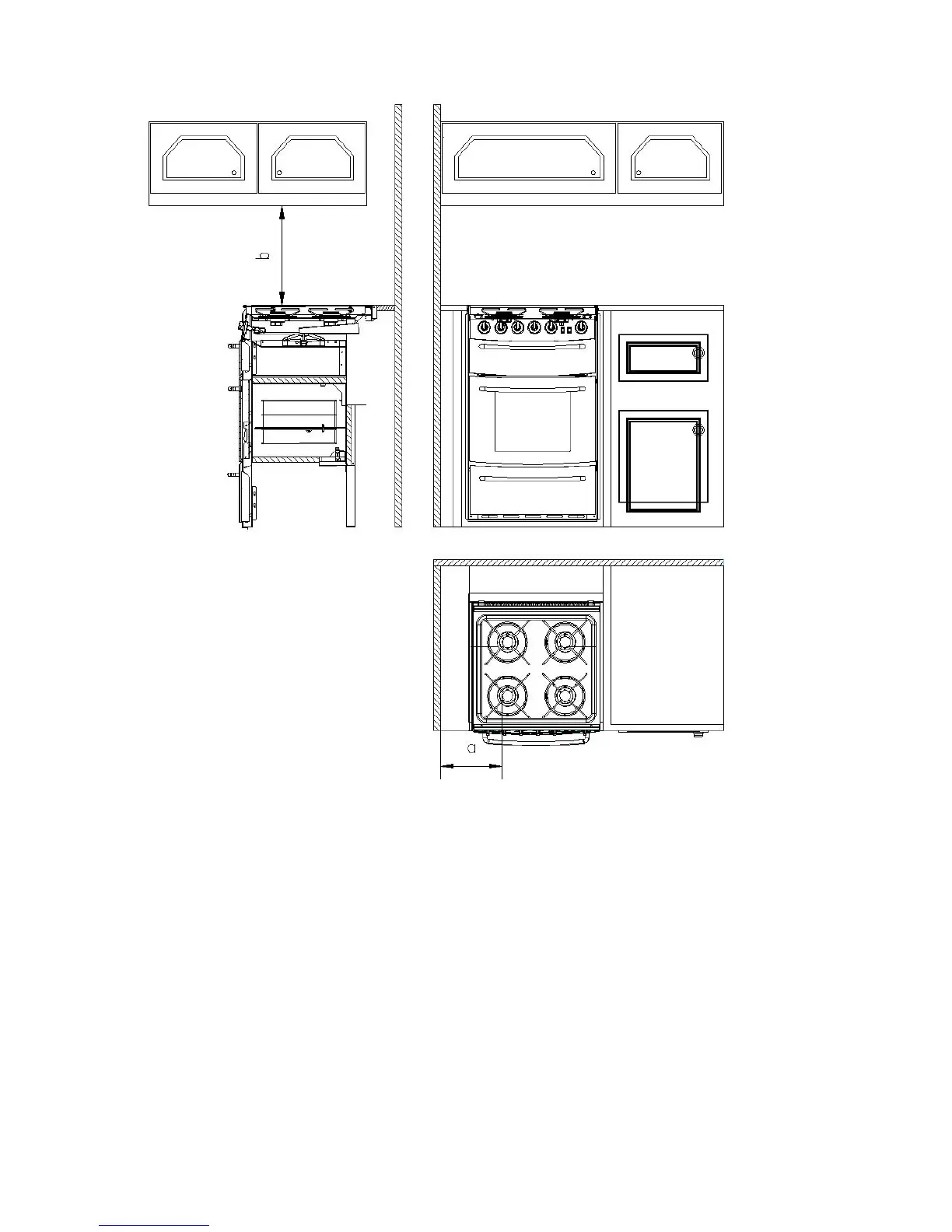 b: The minimum distance between the cooker and flammable fittings above it (wall
