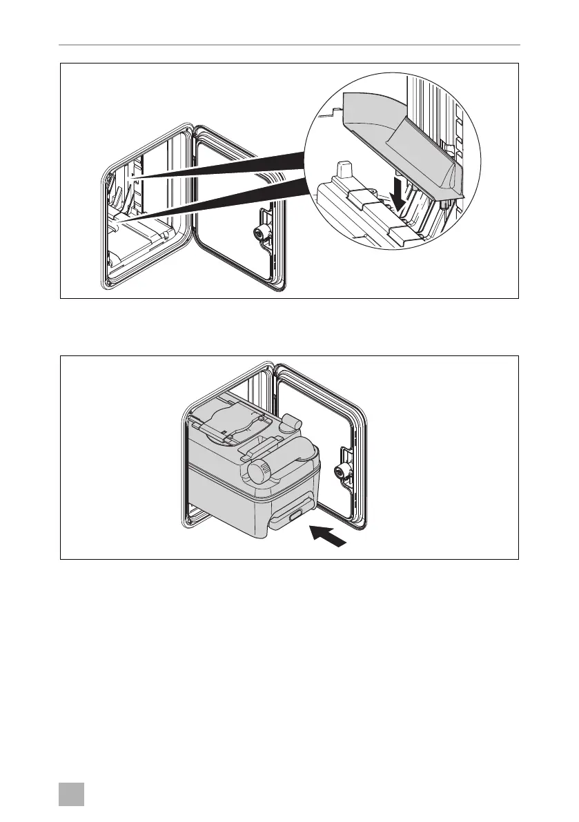 Slide in the mobile tank cassette (fig. h).