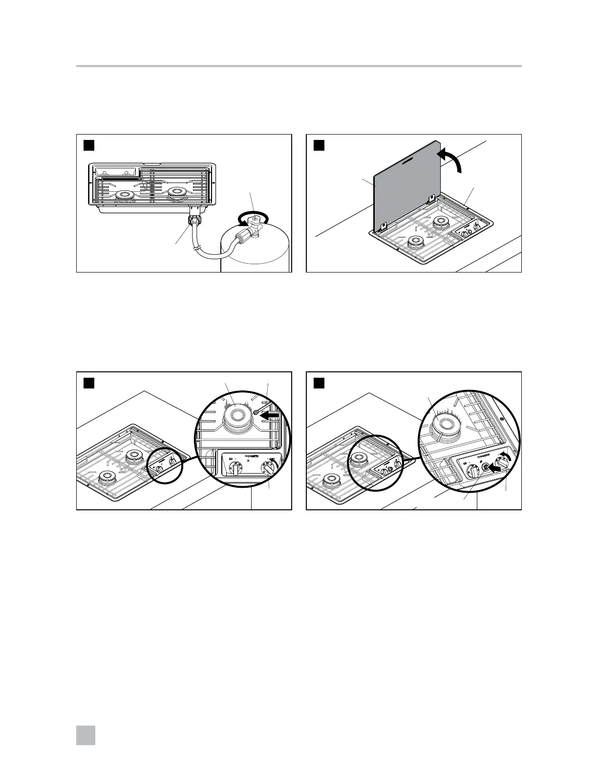 All burner controls operate counterclockwise and must be pressed inward when turning to light. Do not