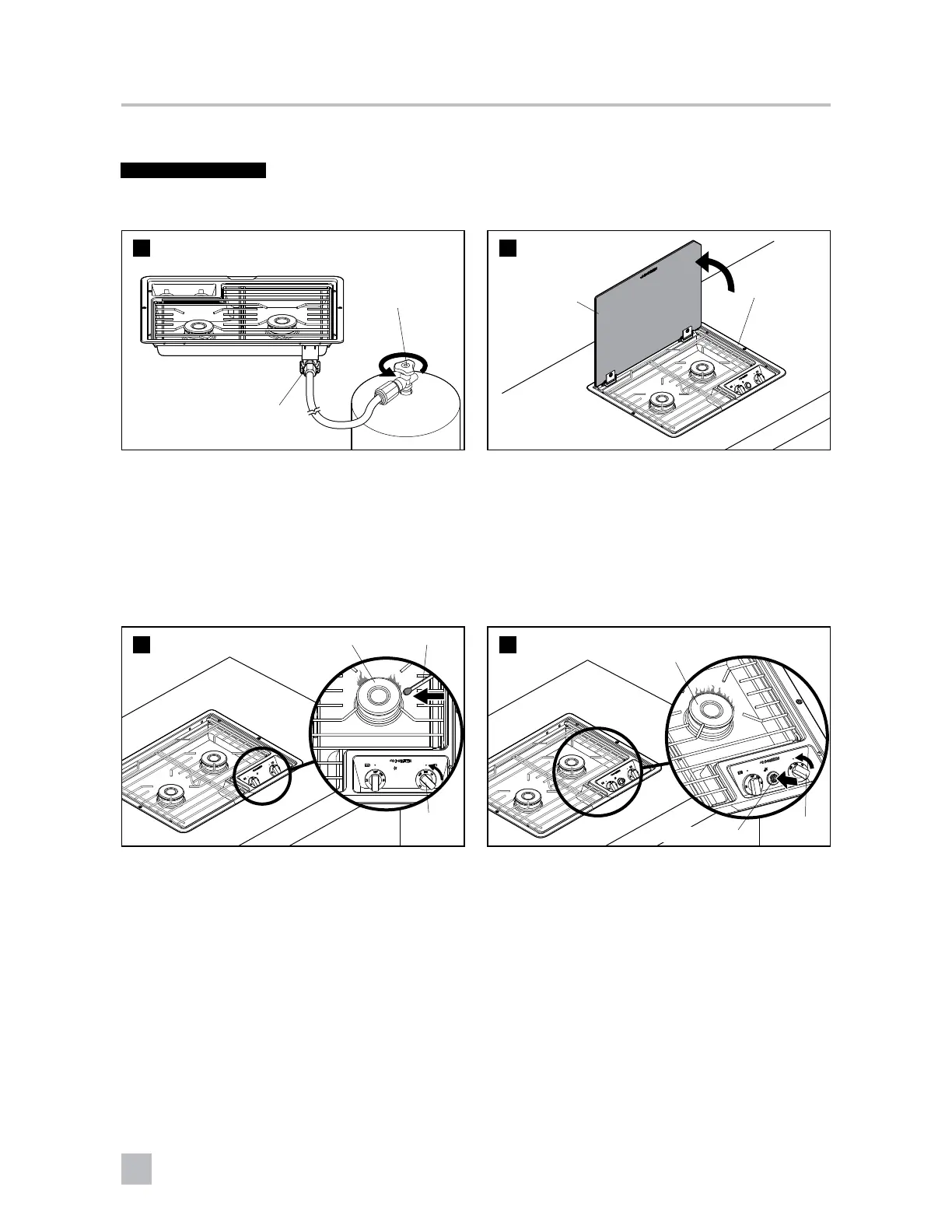 allumer, presser et tourner. Ne pas essayer d’allumer plusieurs brûleurs à la fois.