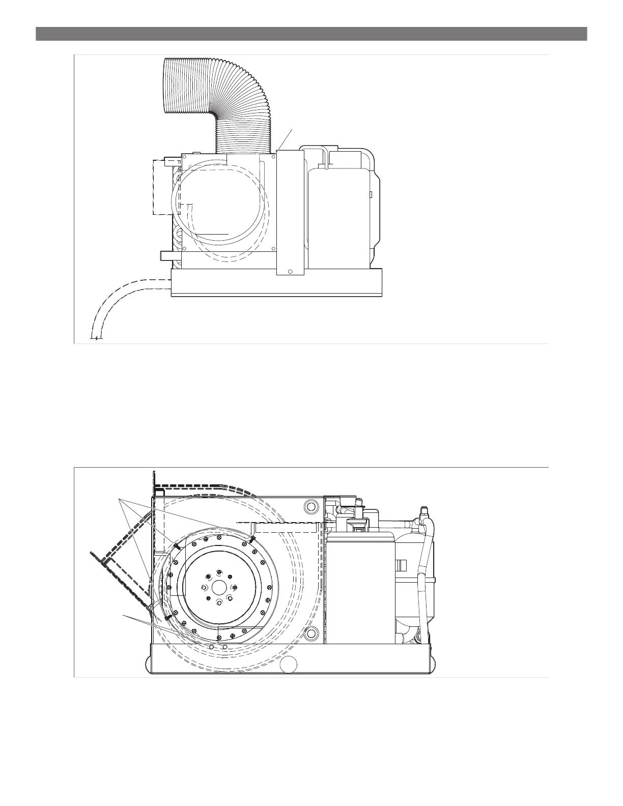 1 Tornillos en el anillo del ventilador 2 Tornillos en la bandeja de purga o en el soporte