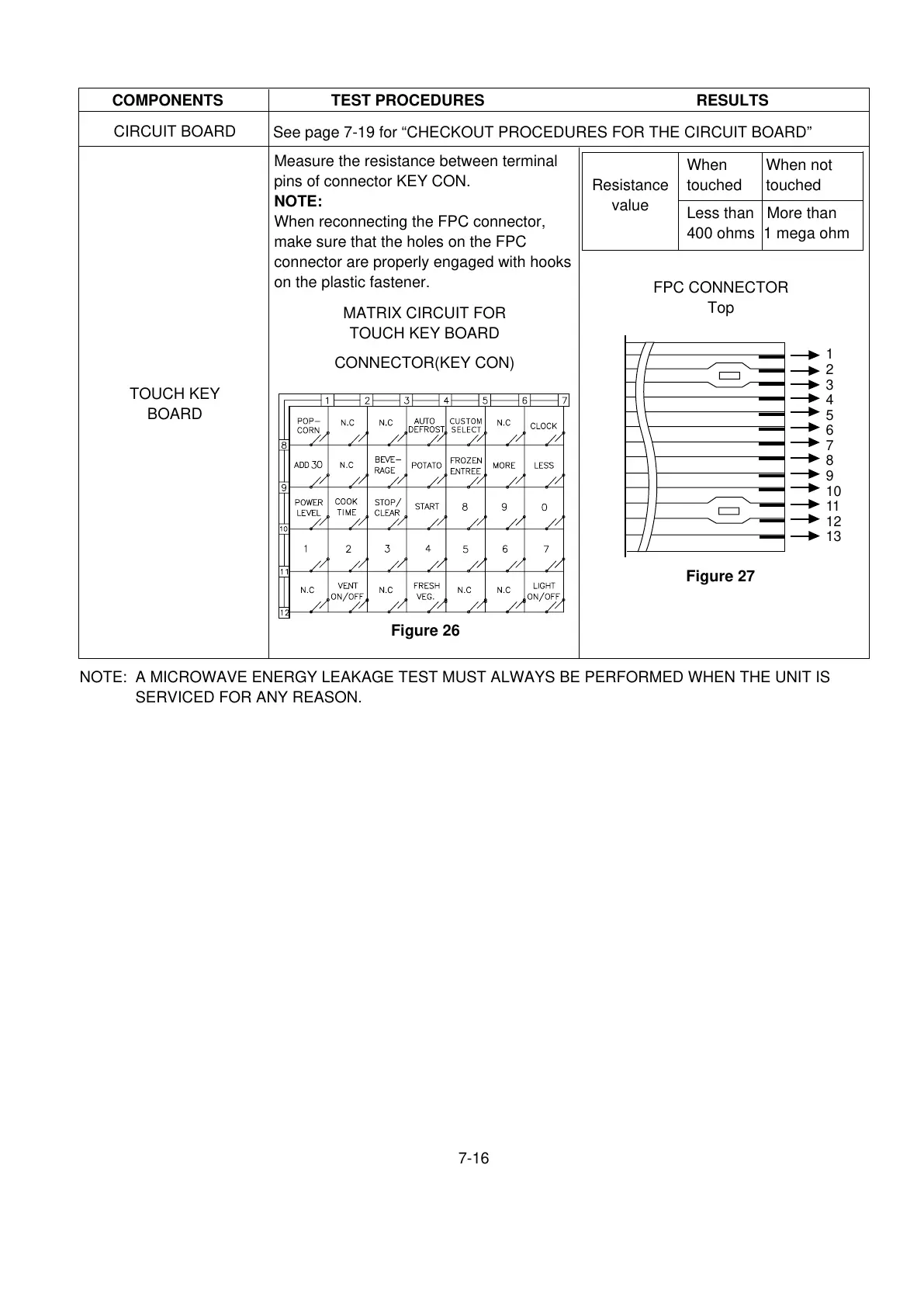 NOTE: A MICROWAVE ENERGY LEAKAGE TEST MUST ALWAYS BE PERFORMED WHEN THE UNIT IS