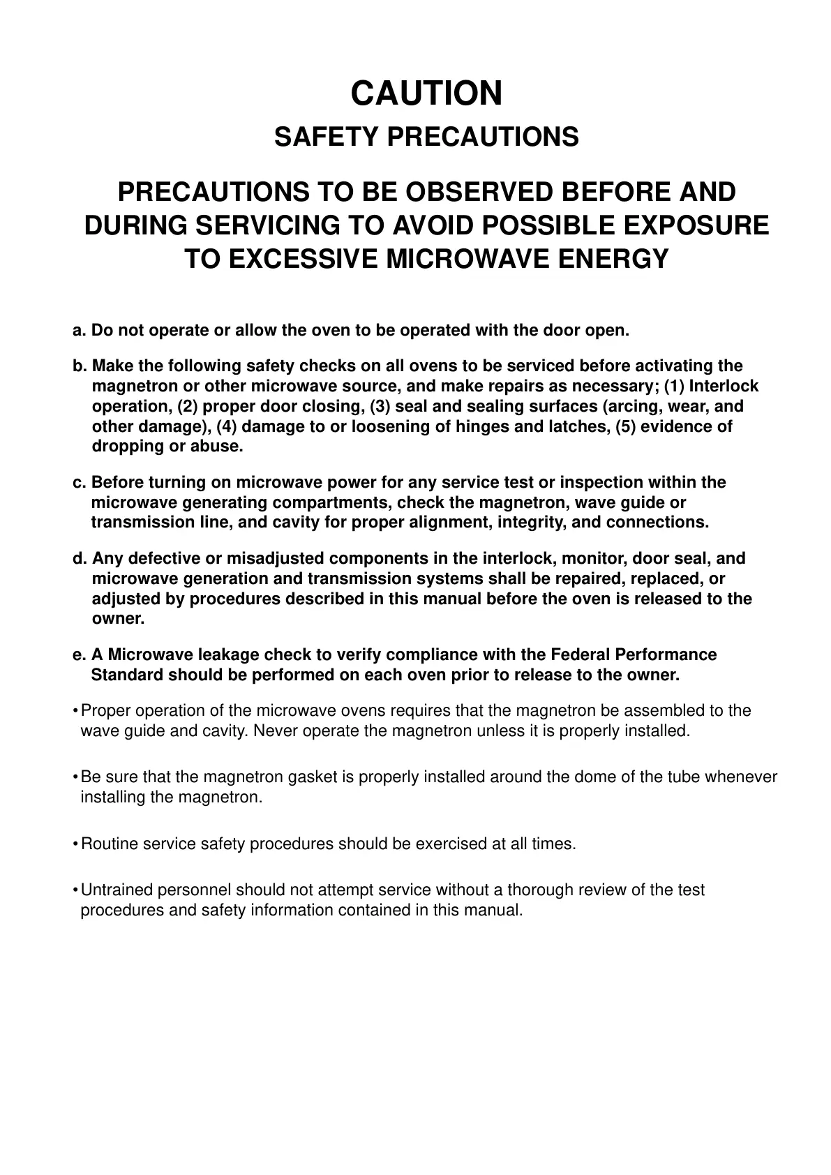 •Proper operation of the microwave ovens requires that the magnetron be assembled to the