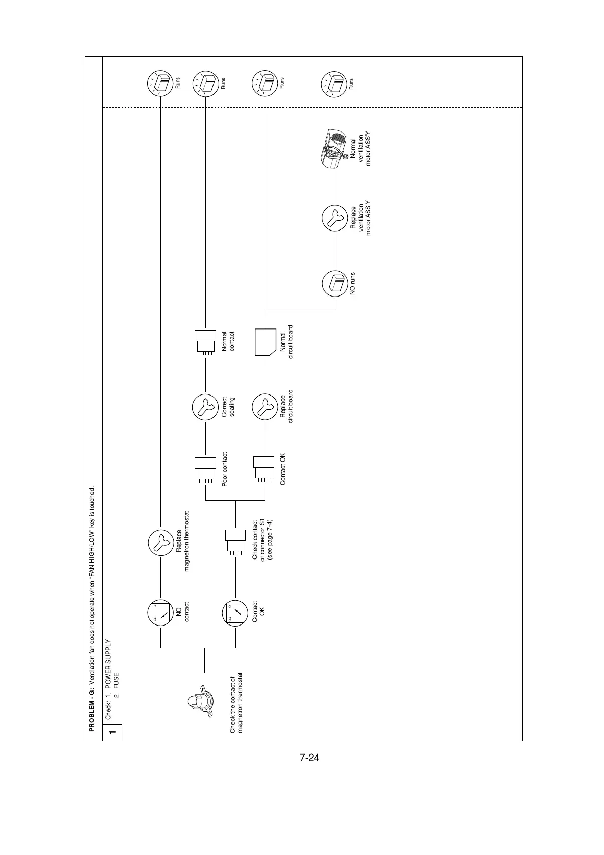 PROBLEM - G: Ventilation fan does not operate when “FAN HIGH/LOW” key is touched.