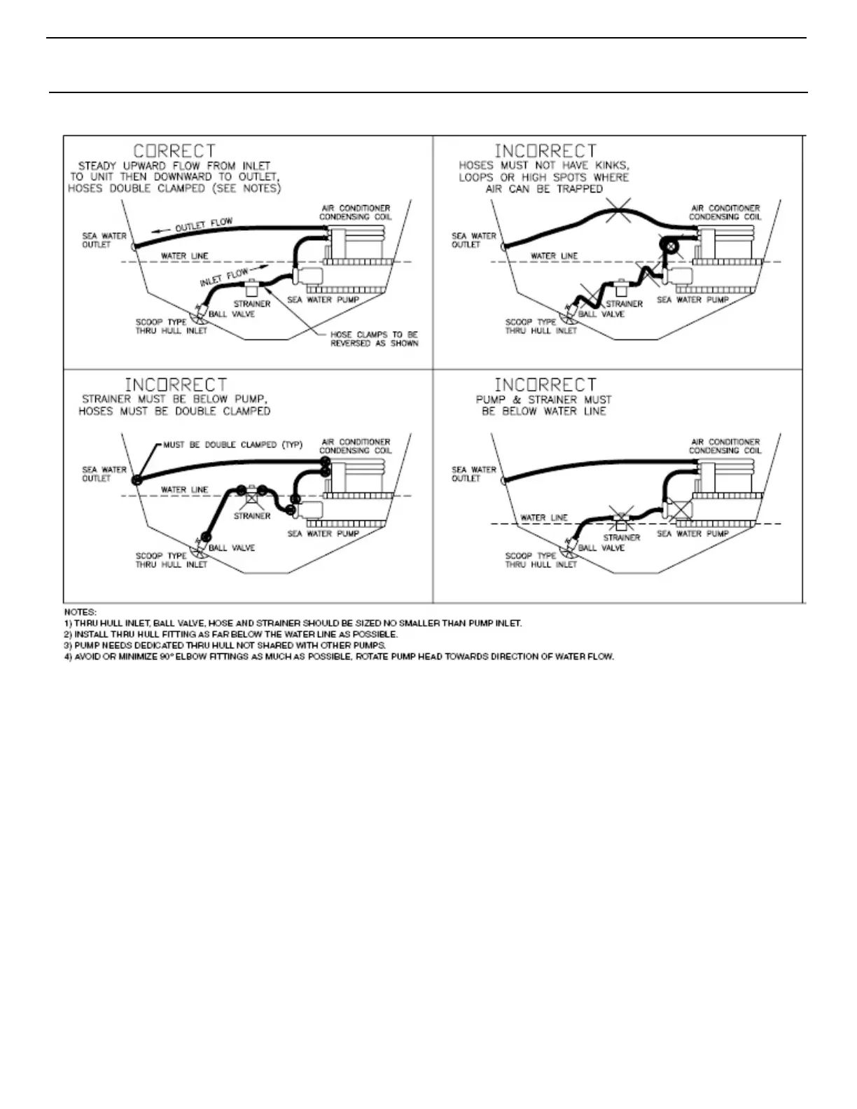 A separate thru-hull fitting must be installed for each seawater pump. Do not attempt to draw water from the thru-hull fitting of an