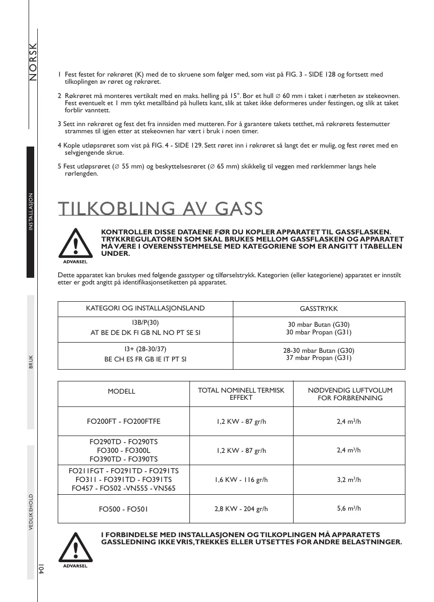 I FORBINDELSE MED INSTALLASJONEN OG TILKOPLINGEN MÅ APPARATETS