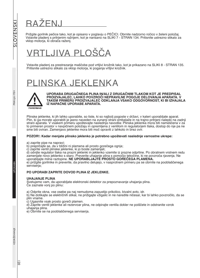 POZOR!: Kadar menjate plinsko jeklenko je potrebno upoštevati naslednje varnostne ukrepe: