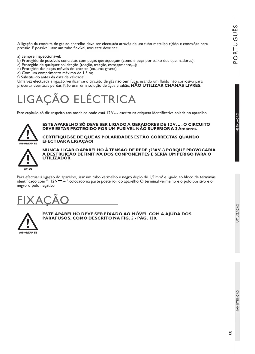 Este capítulo só diz respeito aos modelos onde está 12 V escrito na etiqueta identificativa colada no aparelho.