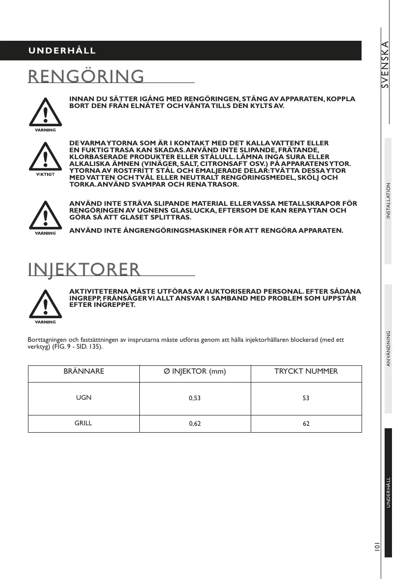 ANVÄND INTE ÅNGRENGÖRINGSMASKINER FÖR ATT RENGÖRA APPARATEN.