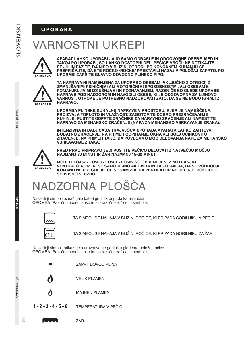 TAKOJ PO UPORABI, SO LAHKO DOSTOPNI DELI PEČICE VROČI; NE DOTIKAJTE
