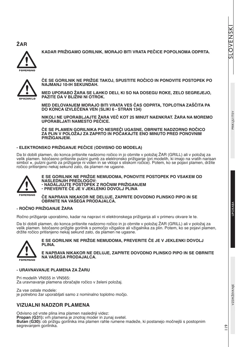 velik plamen. Istočasno pritisnite pulzni gumb za elektronsko prižiganje (pri modelih, ki imajo na vratih narisan