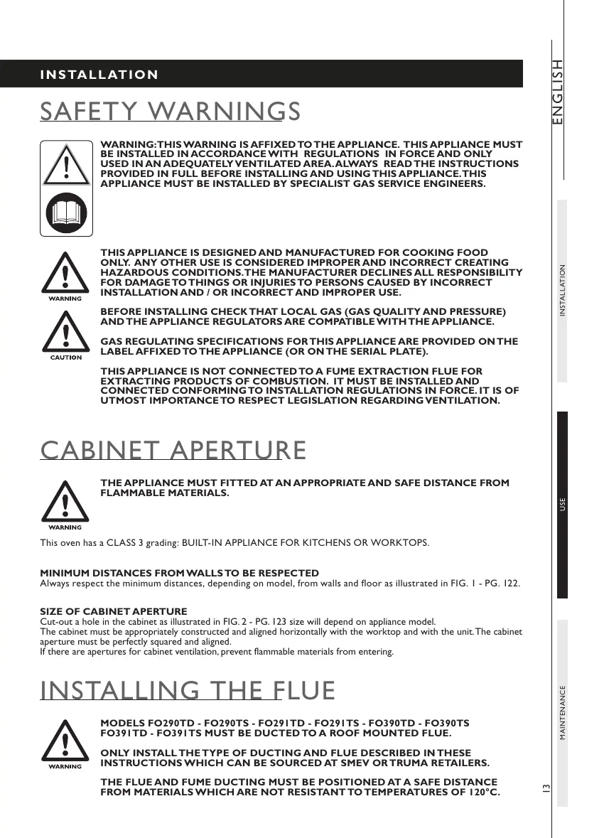 ONLY INSTALL THE TYPE OF DUCTING AND FLUE DESCRIBED IN THESE