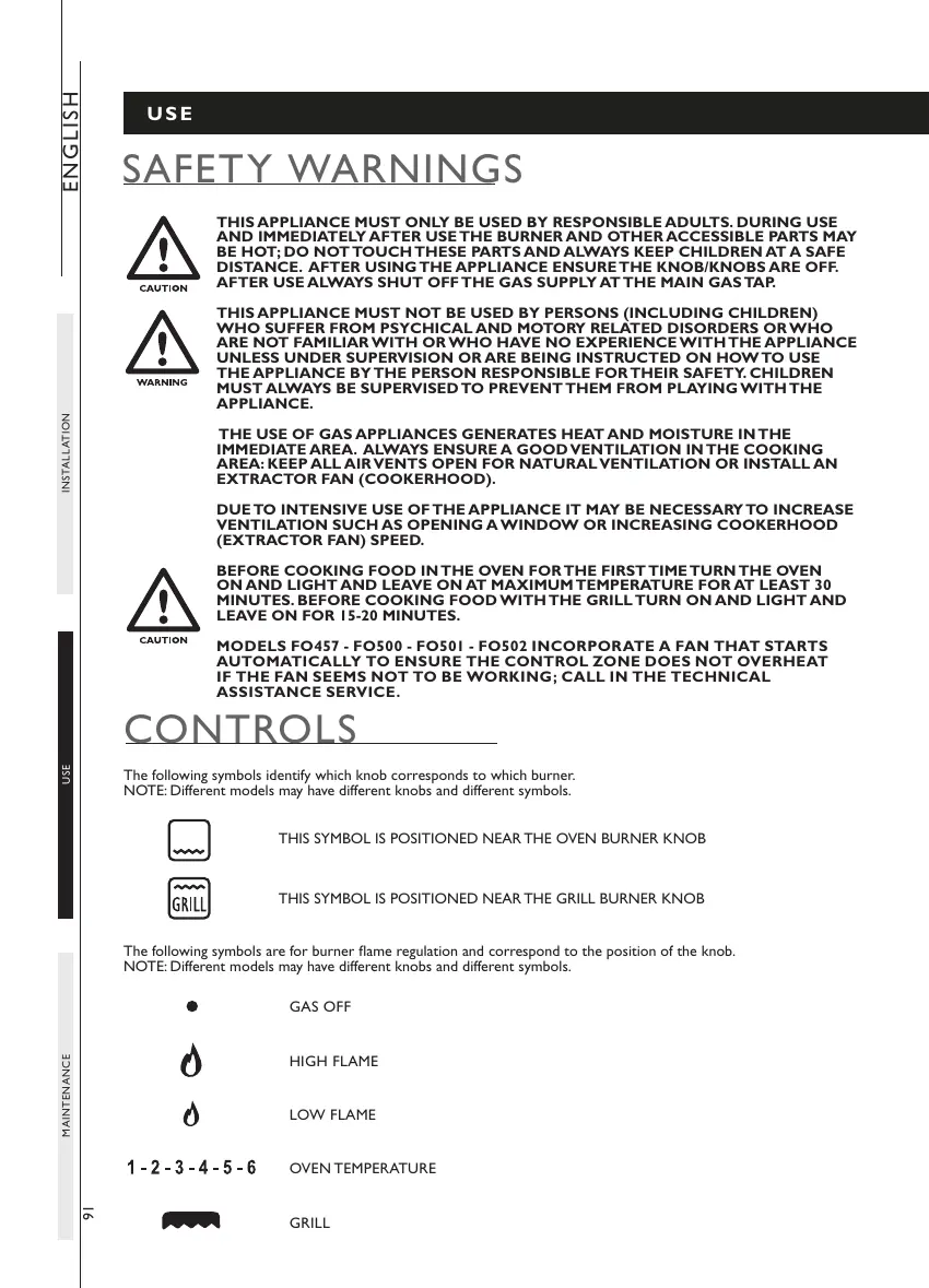 AFTER USE ALWAYS SHUT OFF THE GAS SUPPLY AT THE MAIN GAS TAP.