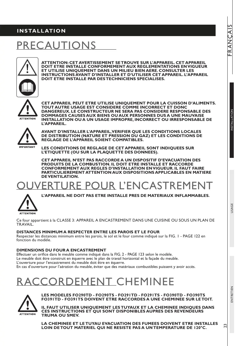 FO391TD - FO391TS DOIVENT ETRE RACCORDES A UNE CHEMINEE SUR LE TOIT.