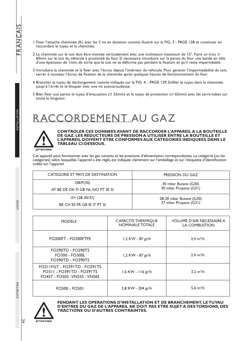 D’ENTREE DU GAZ DE L’APPAREIL NE DOIT PAS ETRE SUJET A DES TORSIONS, DES